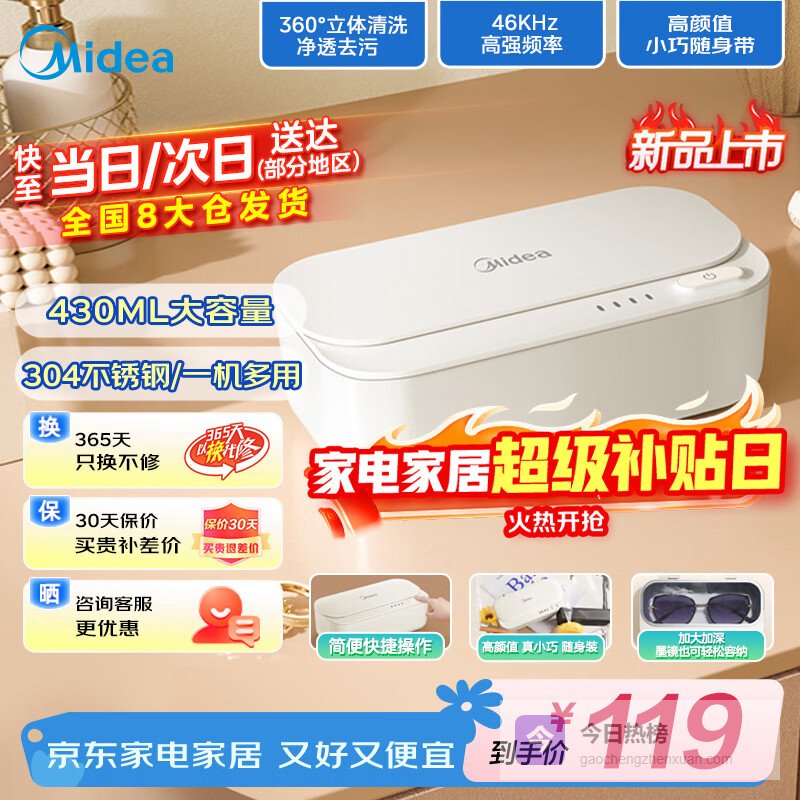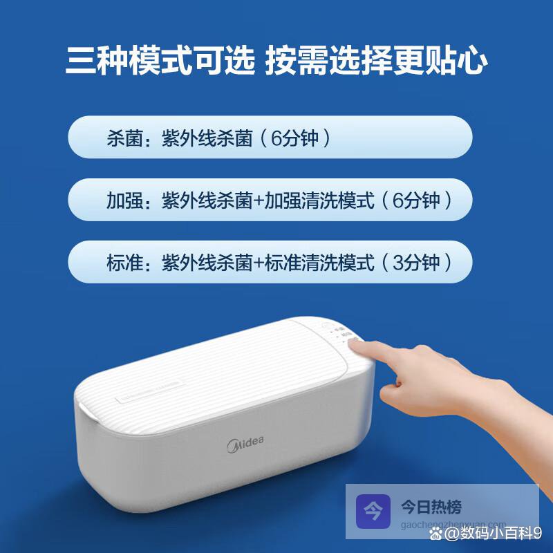 在性能表现方面,美的超声波清洗机以46KHz的高频震波深入渗透,轻松去除顽固污垢,并实现360°全方位立体清洗,用户普遍反映清洗效果显著且快速。同时,新型号还配备了紫外线杀菌功能,可以有效消灭细菌,提升了洁净度和安全性,从而为用户提供全面的清洁体验。这些功能让消费者在繁忙的生活中能够轻松维护物品的清洁卫生。