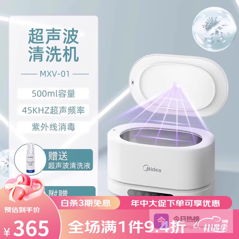 【品牌专营】美的迷你超声波清洗机洗眼镜全自动洗首饰牙套01【白色】MXV-01.贈清洗液和置物架¥