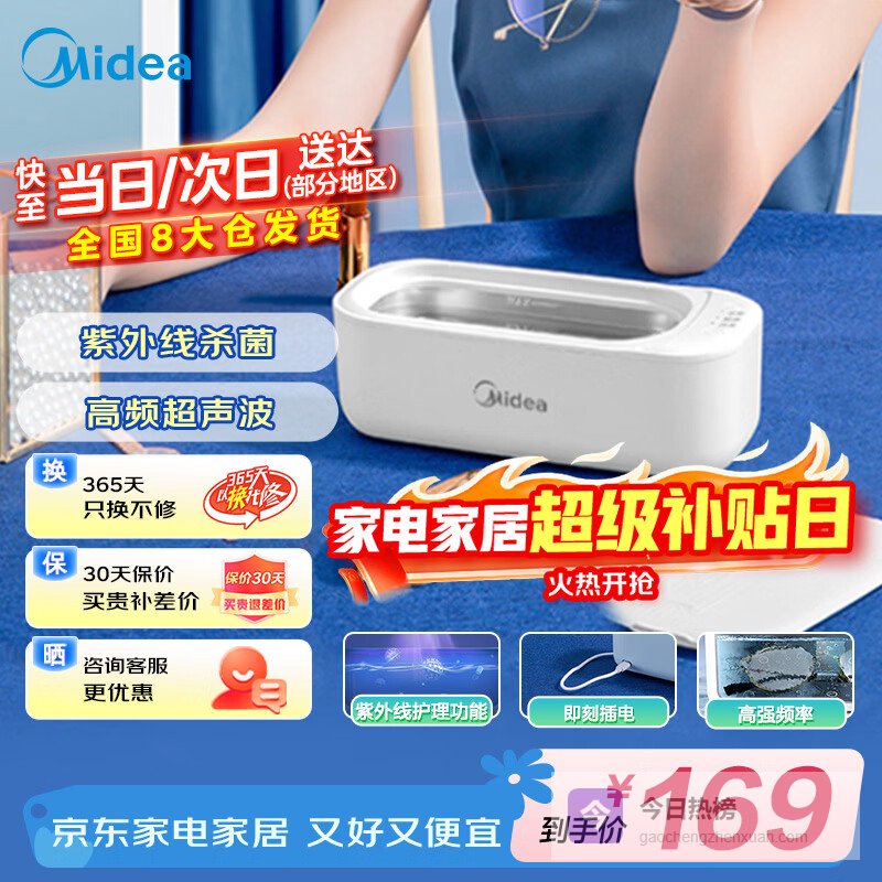 【京东自营】美的超声波清洗机眼镜清洗机首饰剃须刀手表假牙牙套神器UV紫外线除菌MHJ45-01VW¥