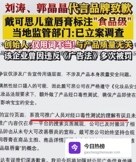 就是她和刘涛一起代言的那个叫戴可思的婴童品牌,被有关部门立案调查了。