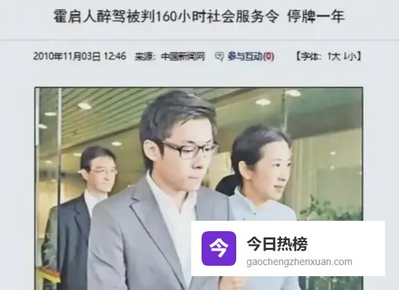 霍家三公子霍启仁的黑料就更严重了。2010年7月,他因为酒驾被判刑。当时霍震霆还公开说“希望儿子能吸取教训”。