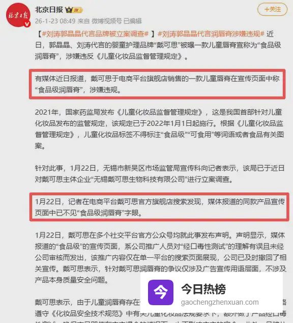 2026年刚开年,戴可思这个牌子就出事了,还把代言人郭晶晶也给拽了进去,说是违规被立案调查了。