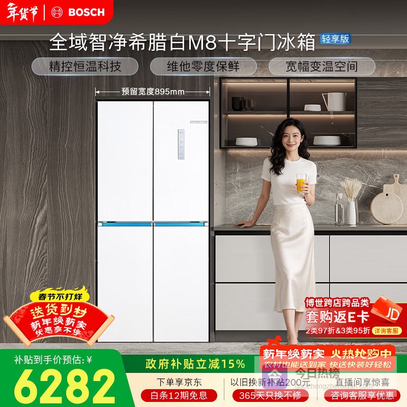 【京东自营】博世全域智净M8550L十字门冰箱1:1冷冻大空间风冷无霜抗菌净味一级能效大容量K5C8¥
