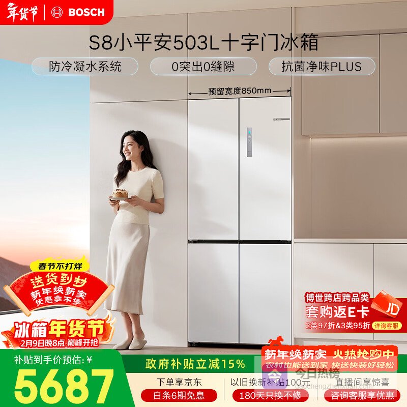 【京东自营】博世小平安S8503L十字门冰箱超薄零嵌平嵌大容量防冷凝水系统变温抗菌净味KCP50A2¥
