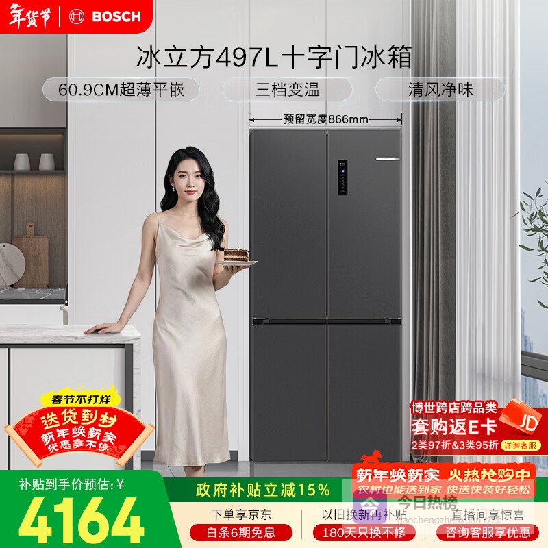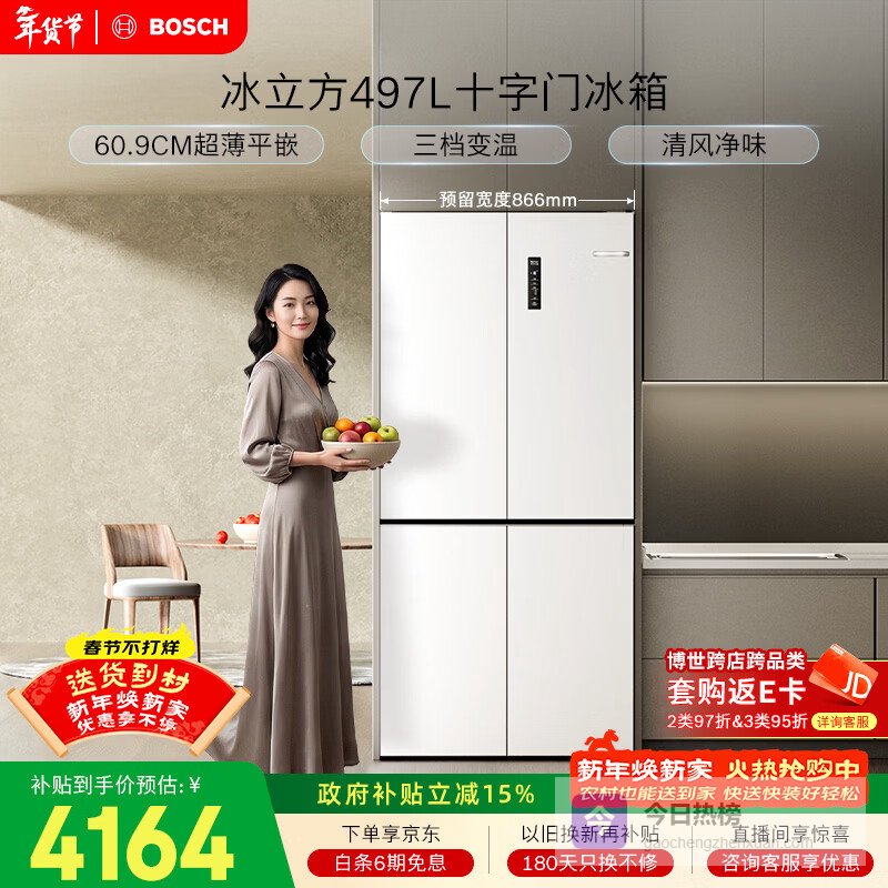 【京东自营】博世冰立方497升十字门冰箱超薄微平嵌入式风冷抗菌净味三挡变温一级能效K1EC49208¥