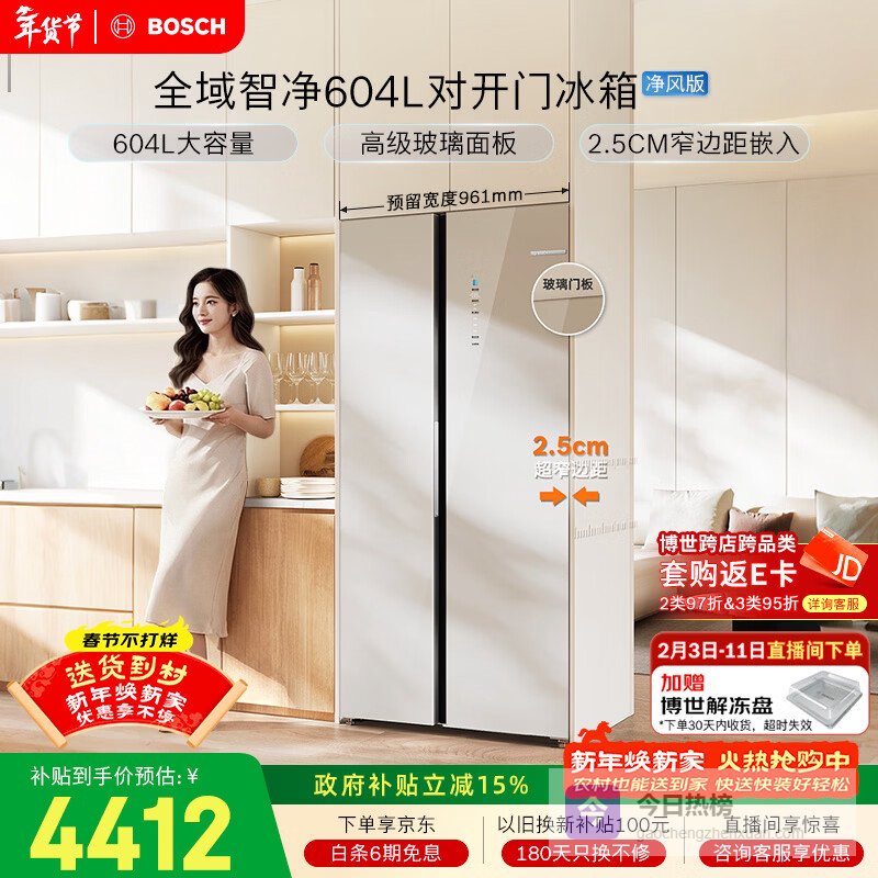 【京东自营】博世全域智净604L对开门冰箱超大容量抗菌净味一级能效无霜变频节能超薄嵌入式KAC98E¥