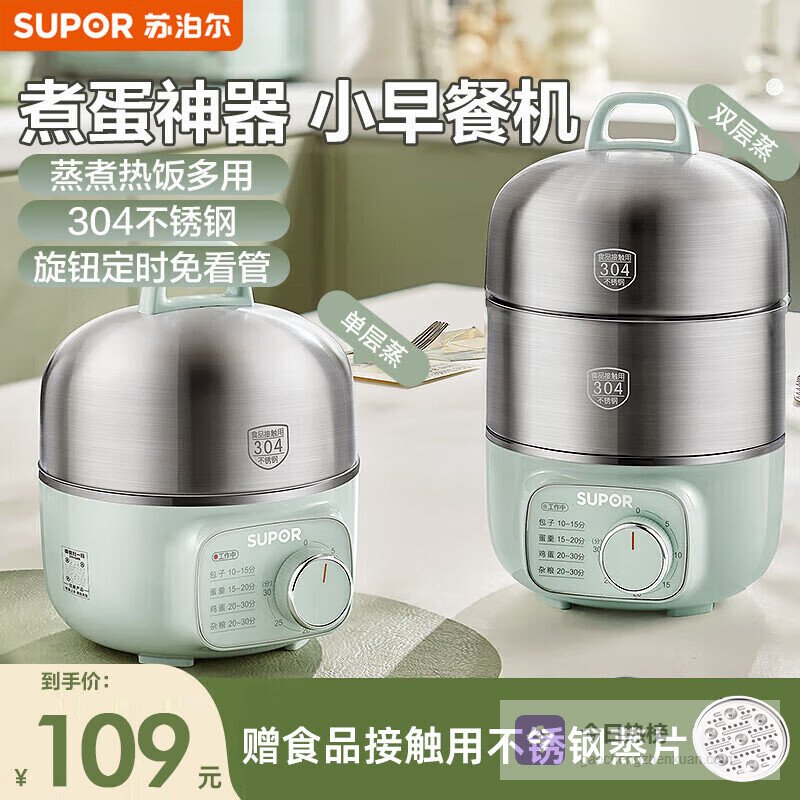 苏泊尔(SUPOR)煮蛋器蒸蛋器迷你电蒸锅双层304不锈钢定时免看管自动断电小型家用早餐机多功能蒸玉米煮鸡蛋神器 双层 【圆形】蒸14个鸡蛋¥