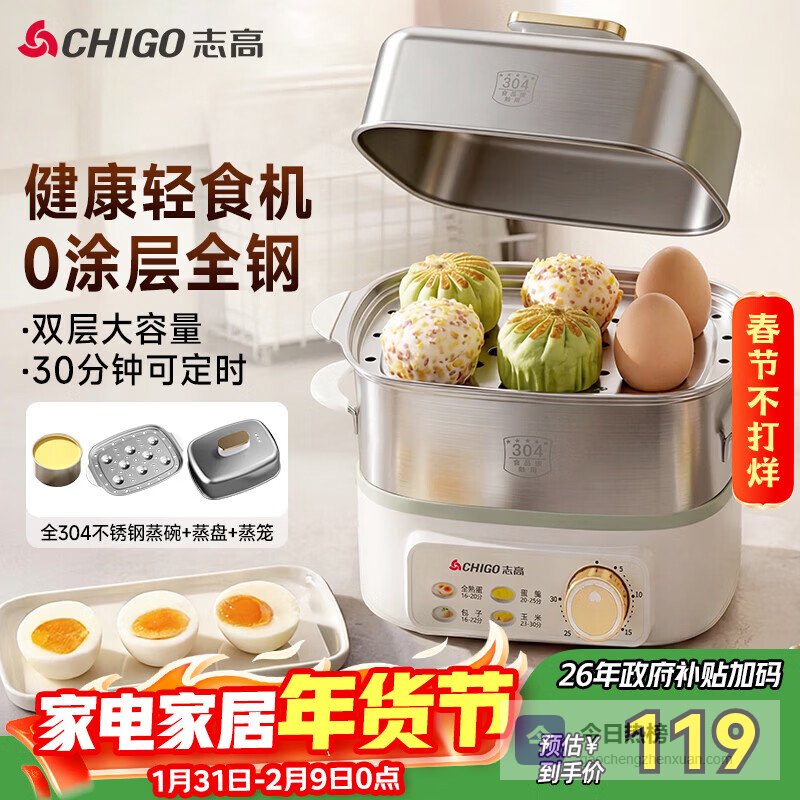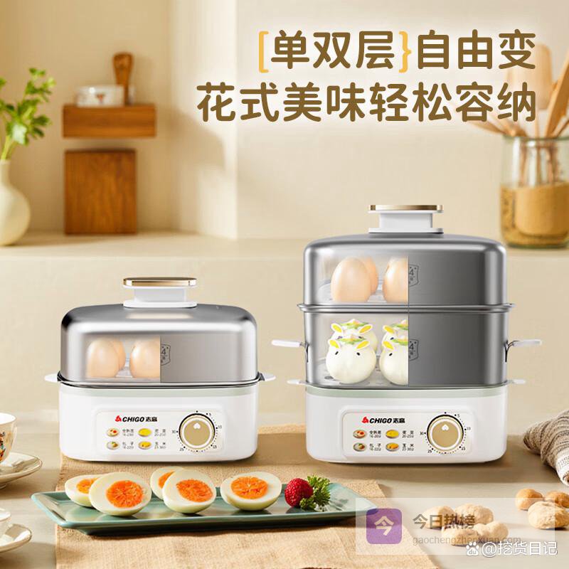 志高(CHIGO)煮蛋器 蒸蛋器 旋钮定时自动断电小型迷你 双层蒸煮鸡蛋神器0涂层不锈钢轻食机电蒸锅煮锅一体机¥