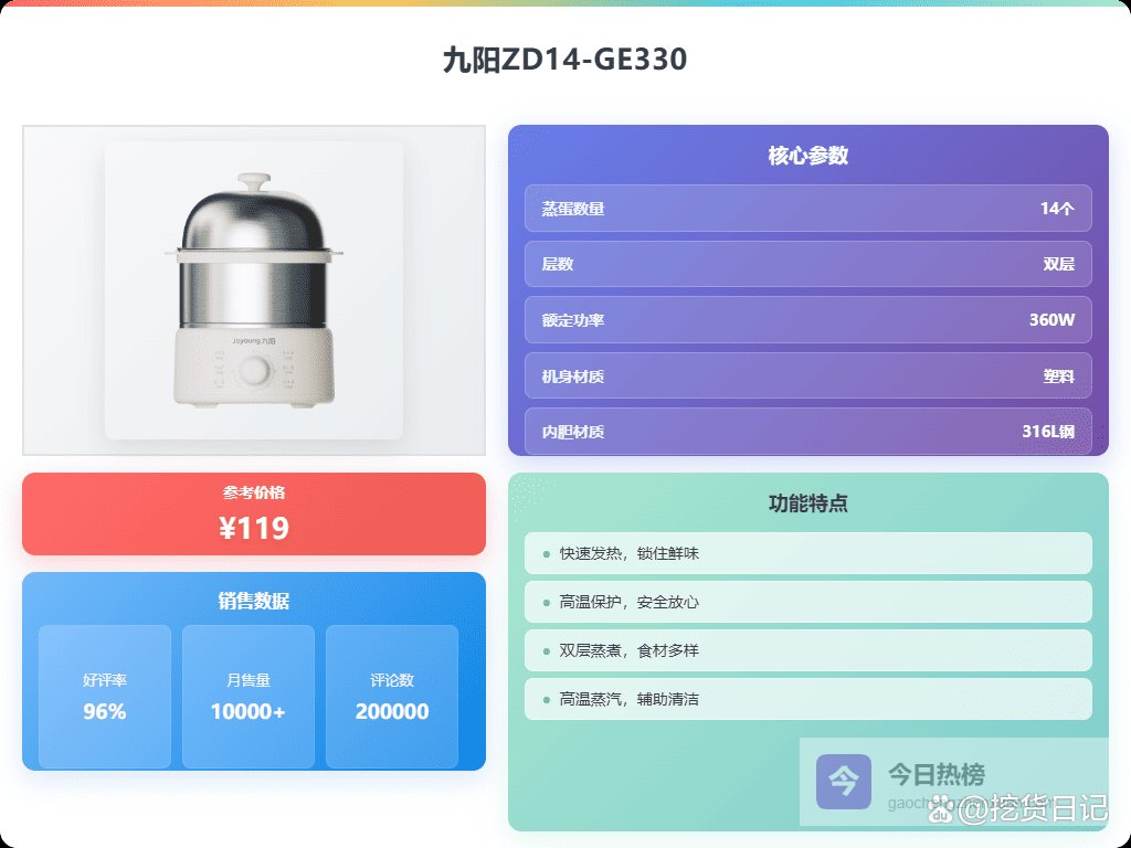 对了,说到好用吗、值得买吗,我自己的答案是肯定的!自从用上靠谱的煮蛋器,每天早上都能多睡十分钟,而且想吃溏心蛋、全熟蛋,或者蒸个小包子,全都轻松搞定,幸福感满满!那么,小型不锈钢煮蛋器怎选呢?接下来我整理了10款口碑不错的,大家可以看看。
