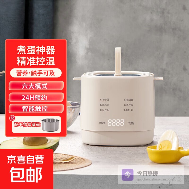 智能多功能:配备6大模式,像温泉蛋、茶叶蛋、酸奶什么的,都能自动操作,省事又靠谱。还支持24小时预约,你可以提前安排好时间,睡醒就能吃到热腾腾的早餐,特别适合忙碌的早晨或者准备营养辅食的宝妈。