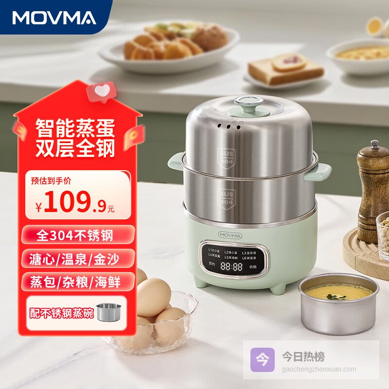 MOVMA鸣米智能蒸蛋器304不锈钢双层煮蛋器家用小型可预约定时自动断电烹饪早餐机 双层 清新绿【配不锈钢蒸碗】¥
