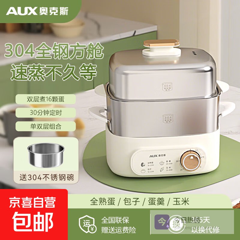 奥克斯(AUX)煮蛋器蒸蛋器自动断电多功能家用小型蒸鸡蛋蒸锅一体早餐机 双层 超豪华款 不锈钢(16枚蛋)+304不锈钢碗¥