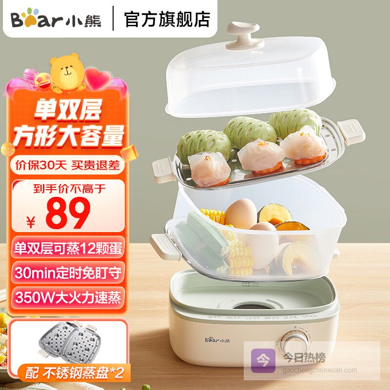小熊(Bear)煮蛋器 蒸蛋器 双层家用迷你蒸锅小型2-3人用 早餐神器 鸡蛋羹自动断电 双层 【定时+不锈钢蒸盘】¥
