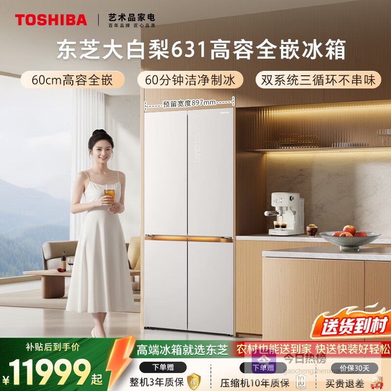 东芝(TOSHIBA)大白梨600L十字门电冰箱高容全嵌入式双系统自动制冰家用一级能效超大容量GR-RF631WI-PG1¥