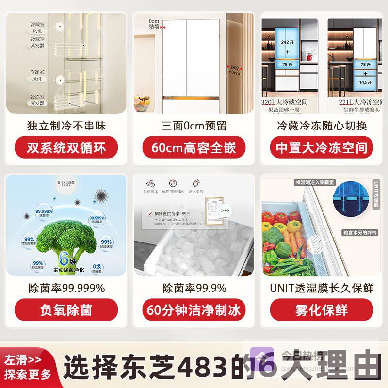 2️⃣ 东芝大白桃Pro463L六门冰箱483