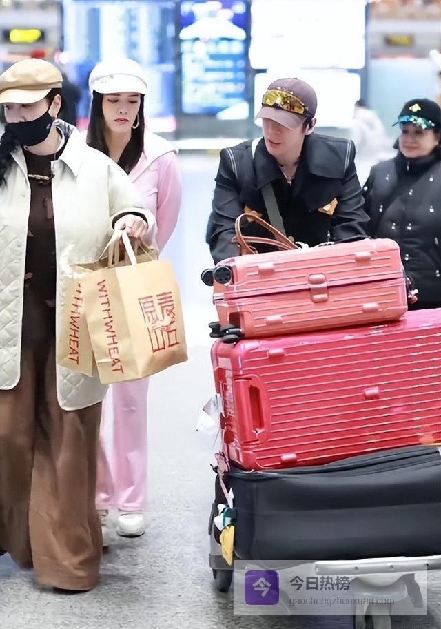 再瞅瞅张伦硕,推着一车满满的行李,简直就是个“超级奶爸”,这场景别提多让人心里暖乎乎的了!