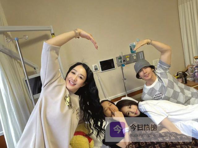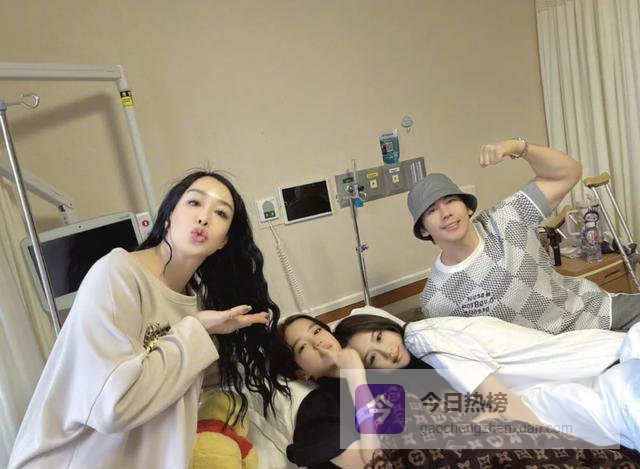 那张病床上的合影真是逗:54岁的钟丽缇冲着镜头嘟嘴可爱,而张伦硕则皱眉盯着女儿那条裹着石膏的腿,像个紧张的监工一样。