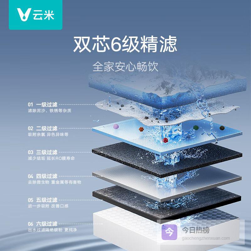 在产品种类方面,云米净水器提供多种型号以满足不同用户需求,如纯水机和加热净水器等。每款产品都拥有优越的性能表现,例如出水流速高达3.52L/min的高效净水能力,确保用户随时都能喝上新鲜干净的水。同时,云米采用的6级或7级过滤系统,结合RO反渗透膜,有效去除水中的重金属及细菌,保障饮用水的安全性。
