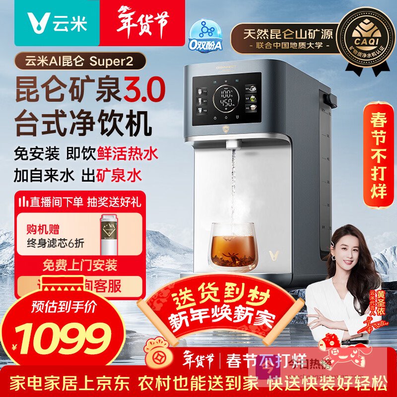 【京东自营】云米家用净水器矿泉台式直饮机昆仑Super2RO反渗透净饮机矿物质加热饮水机台式免安装M¥