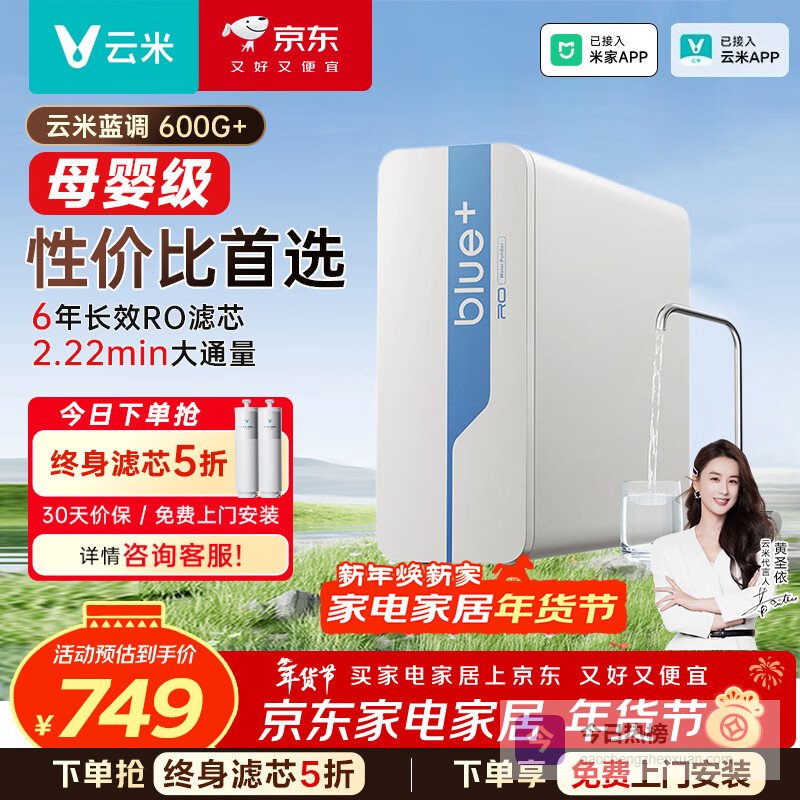 【品牌直营】云米净水器小蓝调600G+净饮机厨下家用净水机6年反渗透直饮机长效滤芯以旧换新已接入米家¥