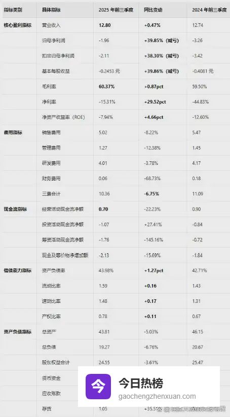 2025年前三季度核心财务指标(数据源自官方报告)