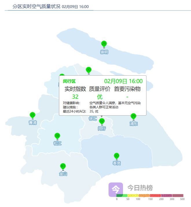 闵行区AQI为32,优。