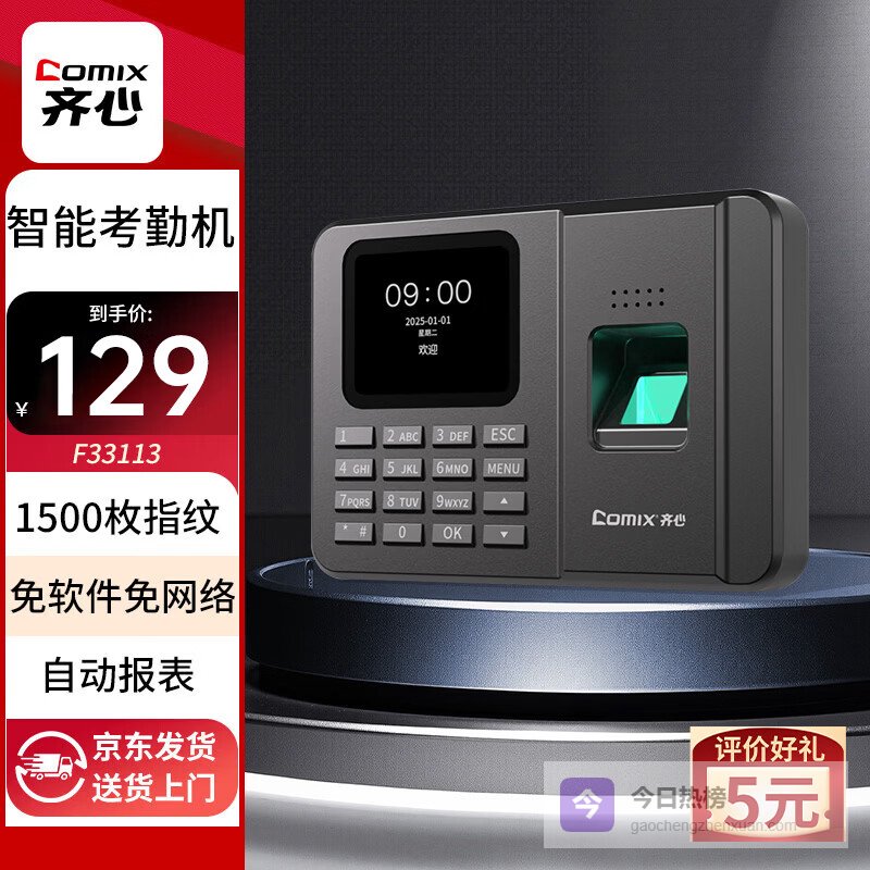 齐心(COMIX)打卡机指纹考勤机 免网络免软件三步简单设置 U盘一键导出报表1600枚指纹考勤机 F33113¥
