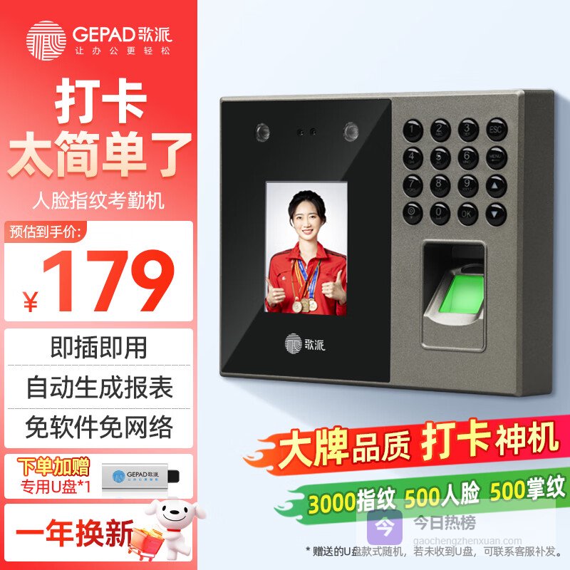 歌派掌静脉人脸指纹打卡机混合识别考勤机 免软件安装 自动生成报表 真人语音无接触打卡签到机 P2¥