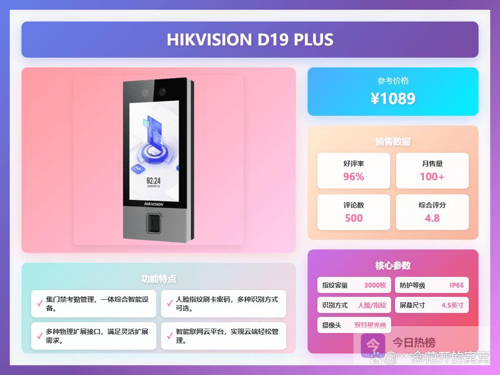 选购建议:适合中大型企业、园区、高安全场所,追求高效识别与远程管理。