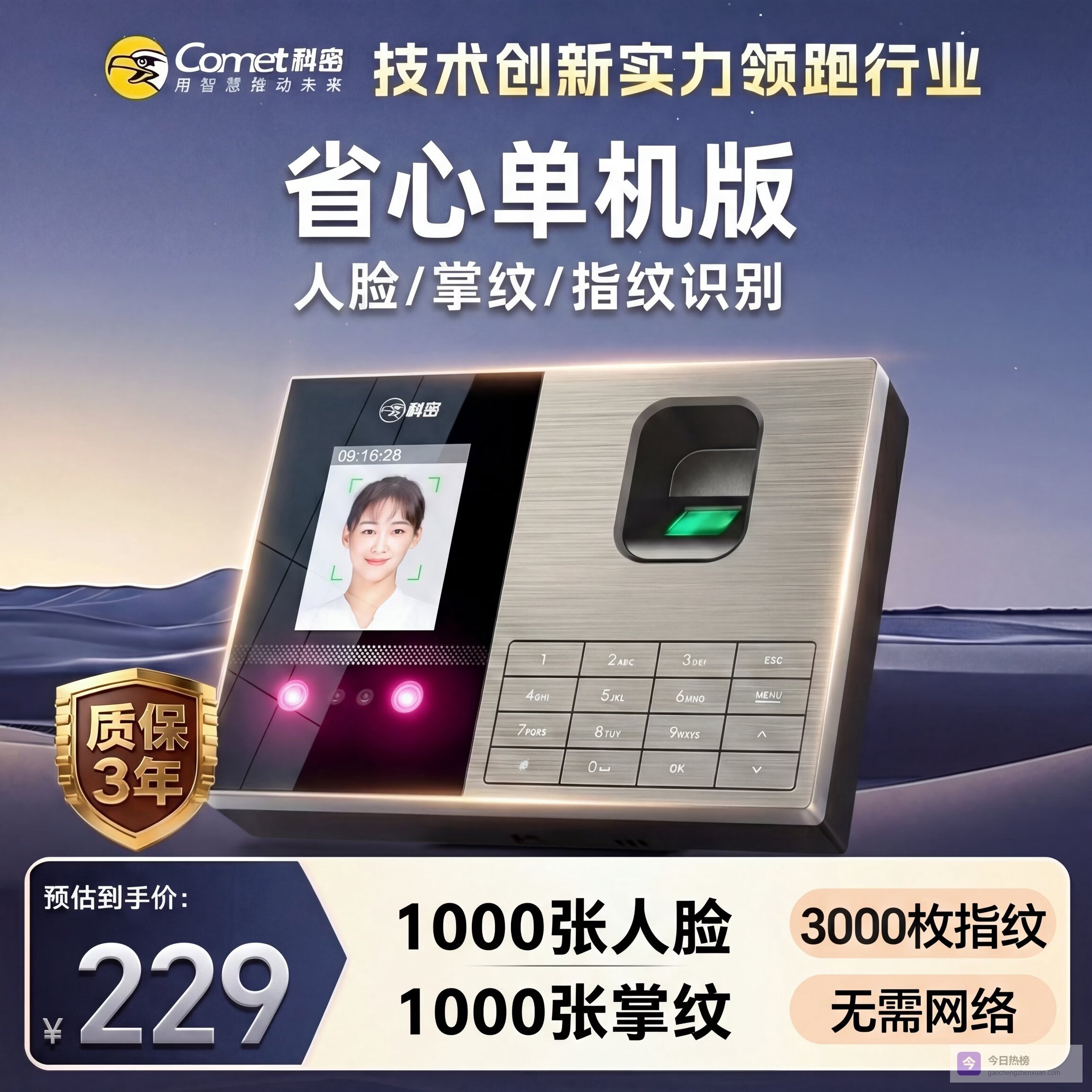 科密考勤机 打卡机人脸+指纹 掌静脉识别 免网络免软件 大容量设置简单 自动生成报表考勤机FZ01¥