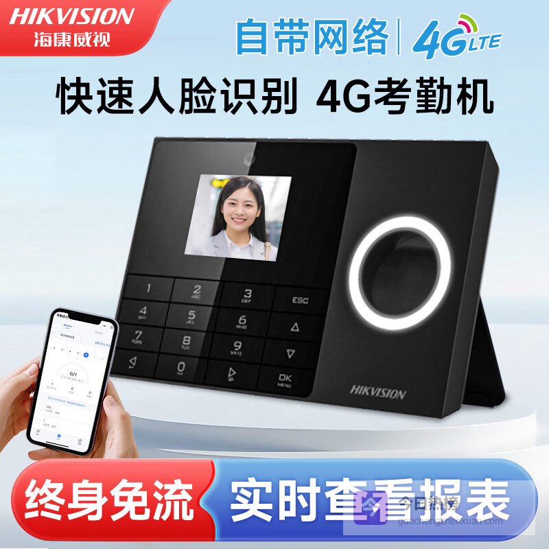海康威视4G自带流量人脸识别考勤机指纹打卡机企业员工上下班签到脱机多店铺远程管理联网 【4G终身免流量】人脸考勤机¥