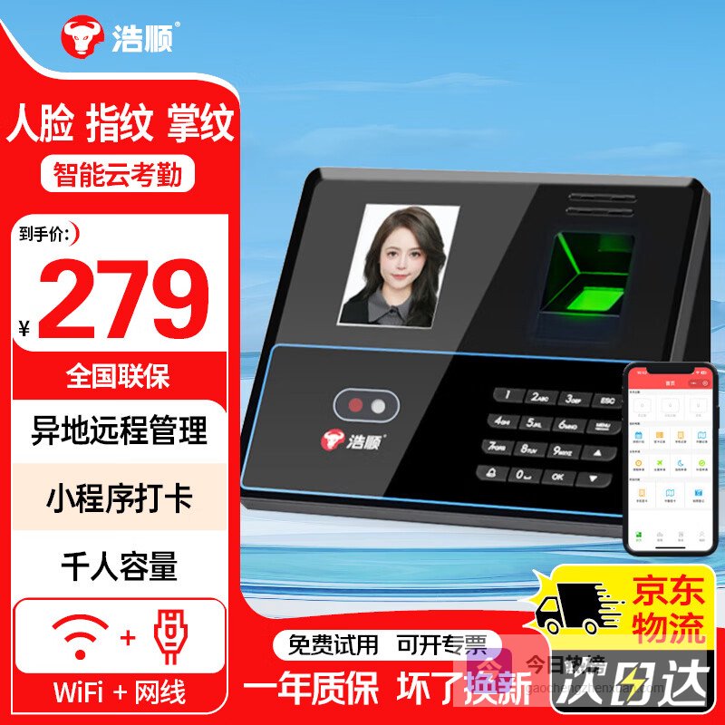 浩顺(Hysoon)智能云考勤机 打卡机人脸+指纹 打卡考勤机 Wi-Fi联网 远程在线管理 C39TW-BS¥