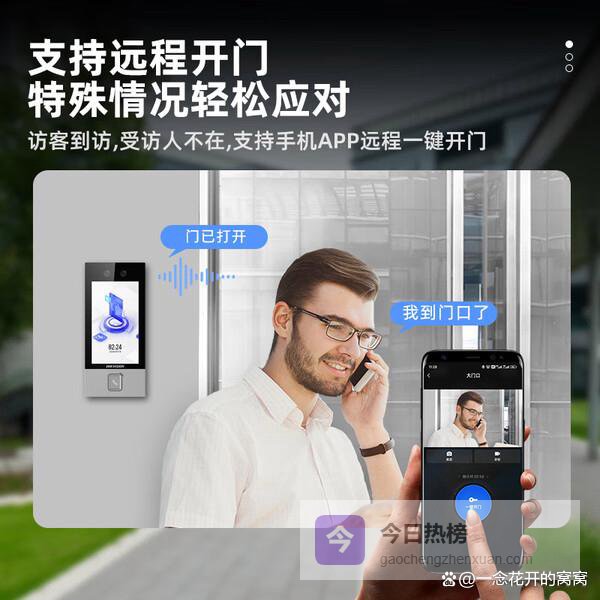 远程对讲+云管理:支持双向语音对讲与手机APP远程开门,搭配海康互联云平台,随时随地查看考勤数据。