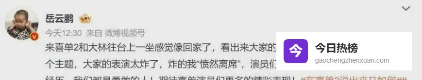 他直接说“呃,岳云鹏要是能不去春晚就好”。
