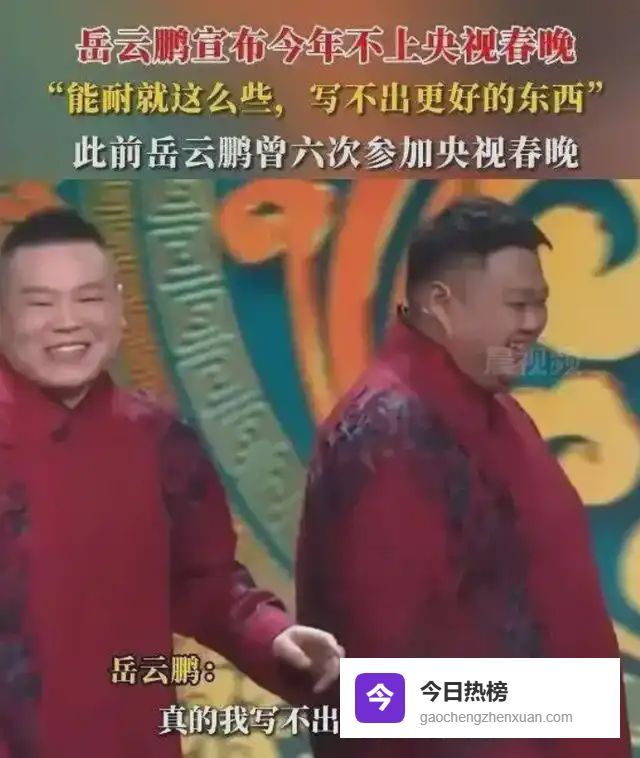 在1月10日的演出上,岳云鹏当众宣称,再也不去春晚蹦跶了!