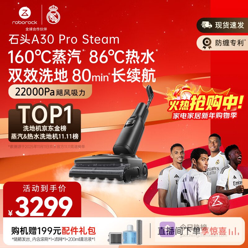 石头(roborock)A30Pro家用洗地机智能吸拖洗一体机扫地无线电动拖把手持吸尘器 超薄180°平躺 0缠毛 A30 Pro Steam¥