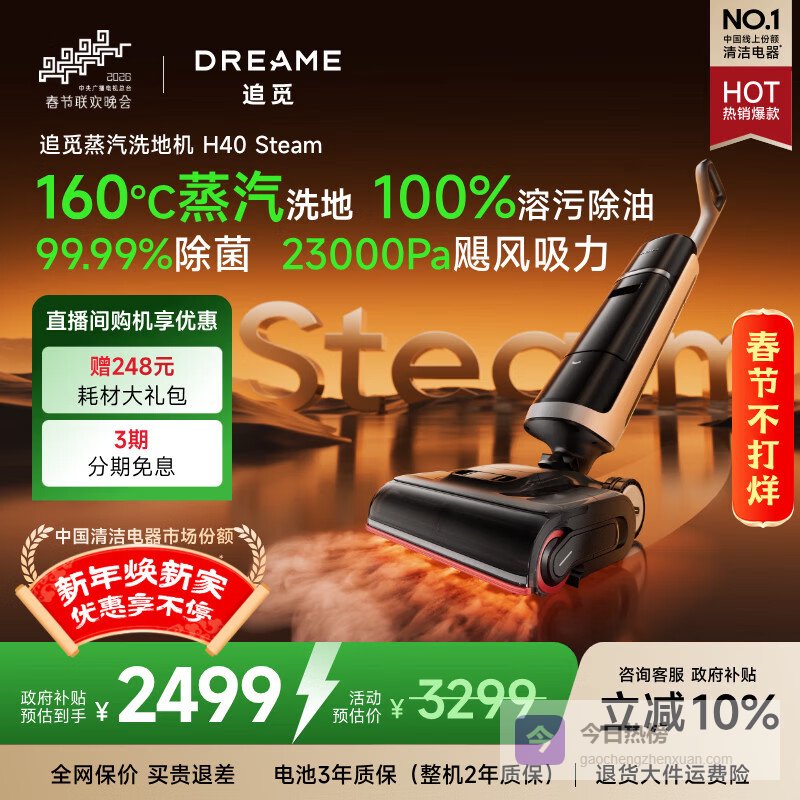 1、高温蒸汽杀菌,除螨率高达99.99%:追觅H40 Steam蒸汽洗地机,搭载160℃高温蒸汽,能有效杀灭地面上的病菌和螨虫,除螨率高达99.99%,给你一个干净、健康的家庭环境。