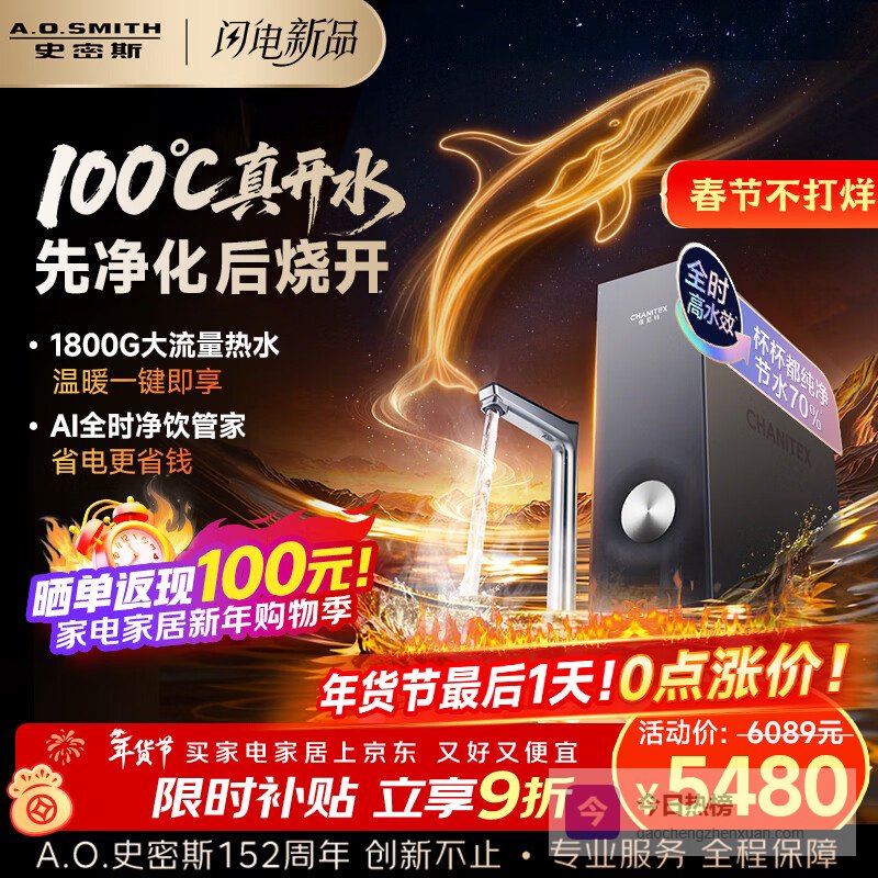 【京东自营】史密斯佳尼特加热净水器蓝鲸净热2.0Ultra1000G直饮一体机厨房专用台下用净水机冠¥