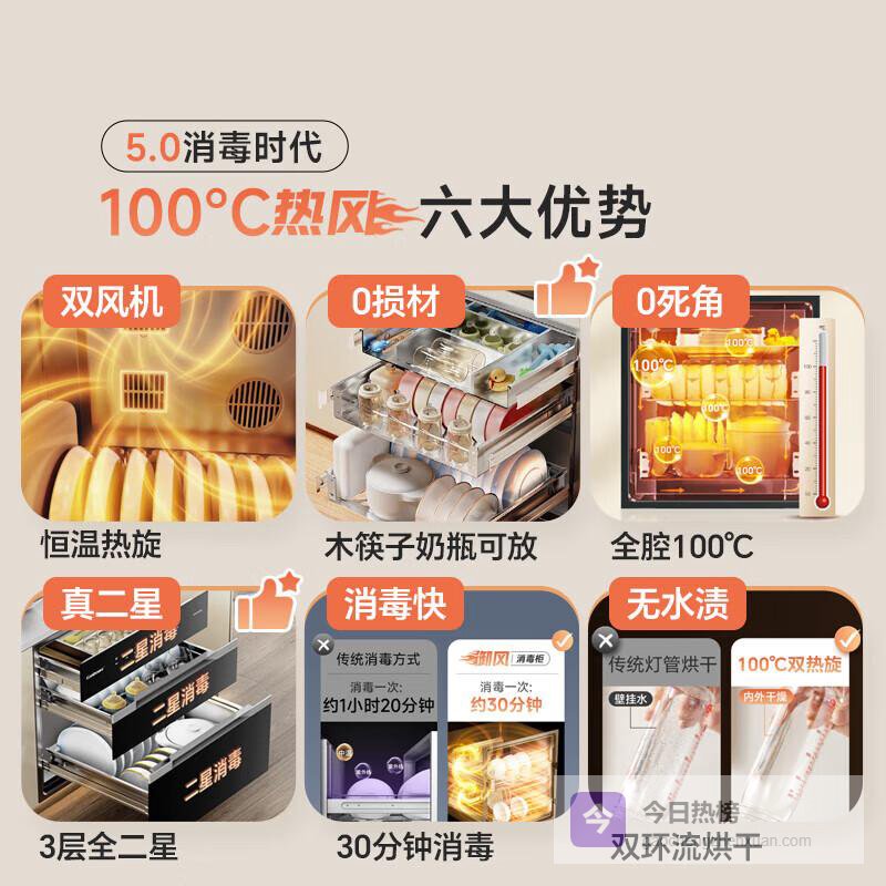 怎么选:- 优先选“组合消毒”:至少包含2种方式,比如“紫外线+臭氧”适合日常餐具,“高温+紫外线”适合宝宝餐具或疫情等特殊时期;- 避开单一消毒方式:比如只有高温的,塑料餐具放不进去;只有紫外线的,碗筷叠放时杀菌效果会打折扣。