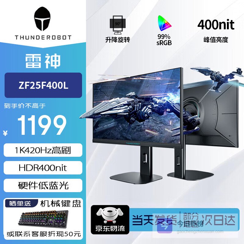 雷神(ThundeRobot)2K高清电竞显示器240/300高刷 FastIPS屏 HDR技术 PS5笔记本外接游戏吃鸡CSGO电脑显示屏旋转升降 24.5英寸ZF25F400L 1K420Hz电竞屏¥