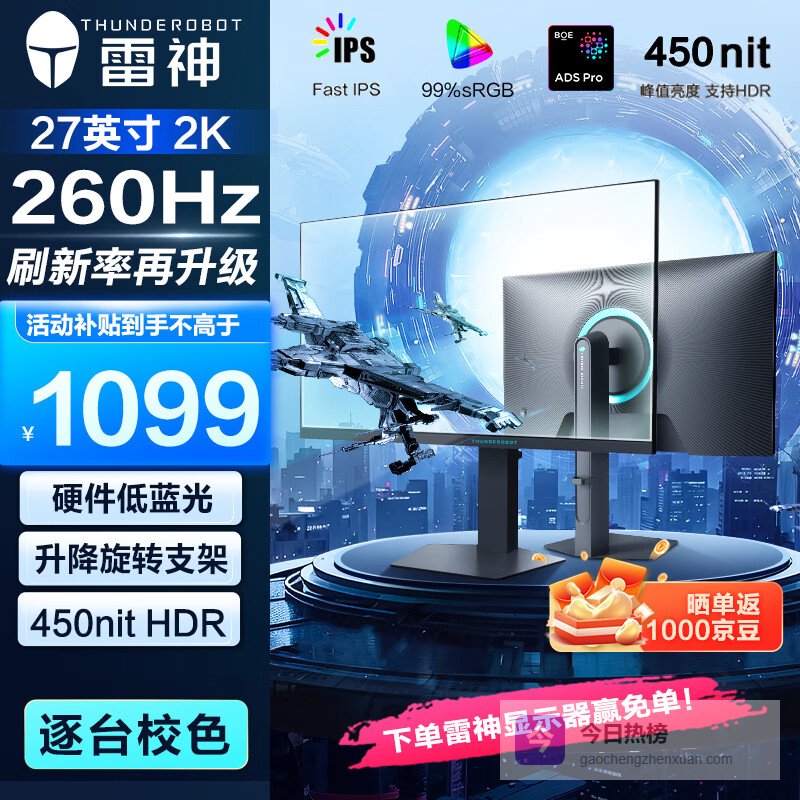 雷神(ThundeRobot)27英寸2K 210Hz原生200 Fast IPS硬件低蓝光 升降旋转HDR450nit峰值非180电脑显示器ZQ27F210L 500nit高亮版JQ27F210L-Pro¥
