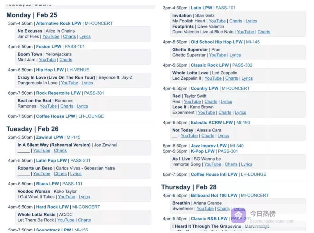 在洛杉矶音乐学院,每天下午的Live Performance Workshop像一场小型“音乐联合国”。课表贴在走廊, K-Pop赫然列在Fusion、Latin、Old School之间。