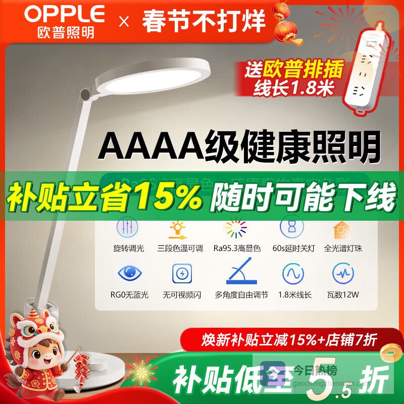 八、欧普照明▶ 专业护眼标准:这款台灯达到了AAA级的专业读写标准,为孩子的视力健康保驾护航。光线既亮又柔,不会刺眼,也能有效减少眼睛疲劳,让孩子安心学习、阅读和写作业。