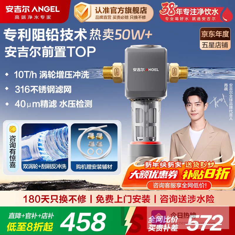 安吉尔【肖战代言】前置过滤器半自动反冲洗 自来水过滤器8T/h 压力表实时监控净水机全屋家用净水J3218 全新顶配【10T双涡轮反冲洗】¥