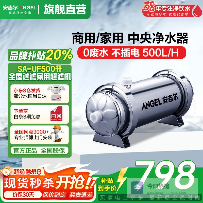 安吉尔【商用/家用超滤机】净水器SA 全屋中央净水机 自来水前置过滤器 大流量超滤机不用电0废水 净化器 500L/小时(SA-UFS500)¥