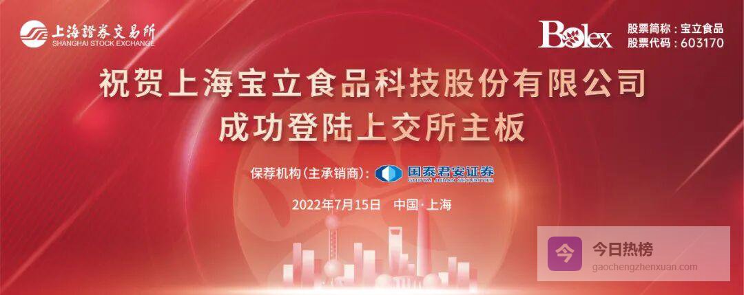2022年7月15日,上海宝立食品科技股份有限公司(证券代码:603170)在上交所举行线上上市仪式。没有锣声的敲锣,却同样宣告这家深耕食品调味料的企业正式登陆资本市场,成为科创板又一“味道制造者”。