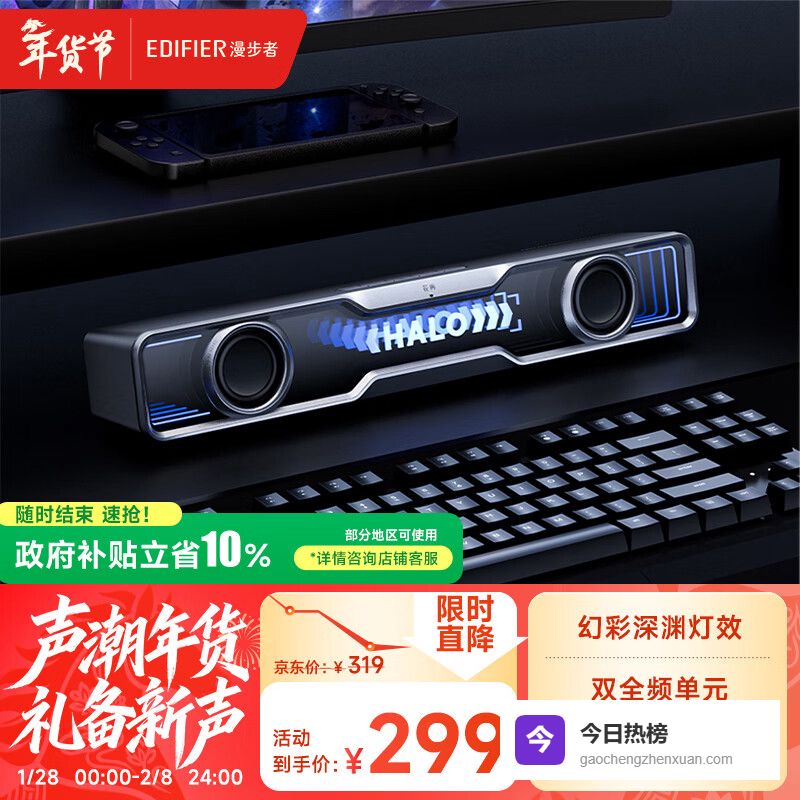 漫步者(EDIFIER)Halo SoundBar 桌面蓝牙音响 高保真电脑游戏音响 RGB灯效 破界黑 新年礼物¥