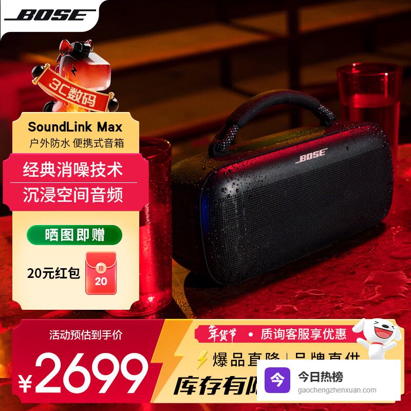 2、Bose SoundLink MaxBose SoundLink Max音箱亮点可真不少!音质方面尤其出色,它不仅仅是立体声和深沉低音那么简单,两个中低音单元加一个高频扬声器,让声音层次分明,空间感十足。而且人家还用了 Bose 专有的被动双膜共振技术,带来的澎湃低音,听起来确实震撼。一位朋友说得好,音符在房间里回荡时,感觉特别滋润。