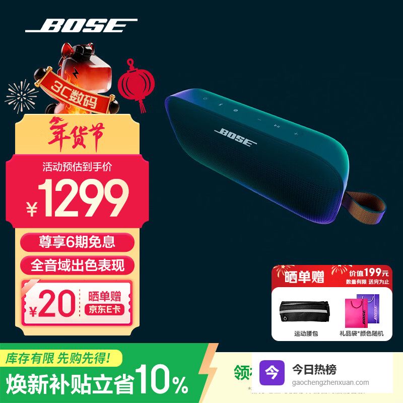 续航方面,这款音箱/音响也足够给力。它拥有长达20小时的播放时间,让你彻底告别电量焦虑。更贴心的是,它还支持USB-C反向充电,关键时刻还能给你的手机充个电,简直不要太方便。另外,搭配Bose APP使用,还能解锁更多自定义功能,玩转你的专属音效。