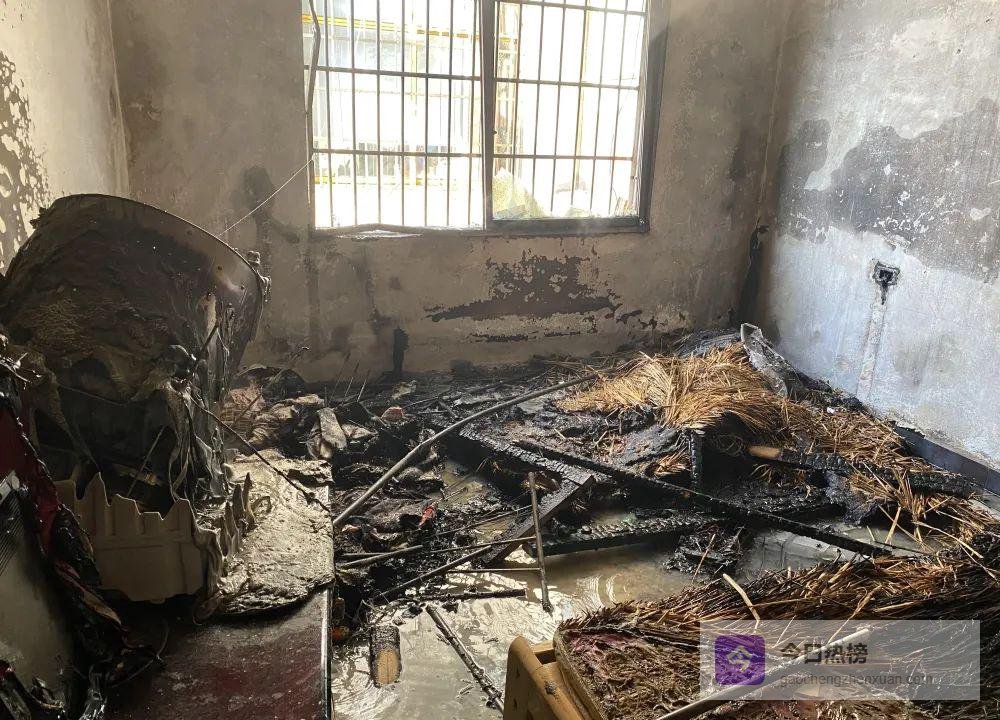 火势凶猛,所幸消防员及时赶到,没有造成人员伤亡,但卧室家具被烧得面目全非,房间一片狼藉。